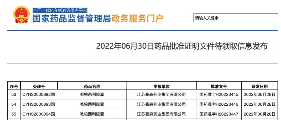 翰森制药CDK4/6抑制剂哌柏西利胶囊获批