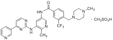化学名称:N-[6-甲基-5-[[4-(吡啶-3-基)嘧啶-2-基]氨基]吡啶-3-基]-4-[(4-甲基哌嗪-1-基)甲基]-3-(三氟甲基)苯甲酰胺甲磺酸盐